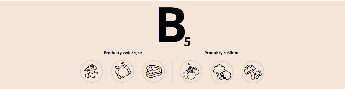 Witamina B5 jest częścią struktury koenzymu A, związku stanowiącego „skrzyżowanie” w kilku szlakach metabolicznych i bierze udział w ponad 100 różnych etapach syntezy lipidów, neuroprzekaźników, hormonów steroidowych i hemoglobiny. Witamina B5 pełni ważną rolę podczas utrzymywania dobrego stanu tkanek i komórek skóry oraz włosów, a także ich naprawy, wspomaga gojenie się ran i zmian chorobowych. a pantetyna, która jest postacią witaminy B5, normalizuje profile lipidowe krwi.