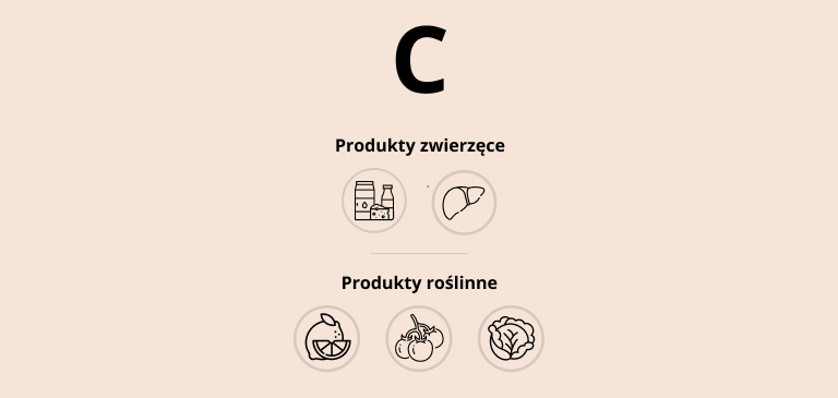 Owoce (zwłaszcza owoce cytrusowe), warzywa kapustne, zielone warzywa liściaste, sałata, pomidory, ziemniaki i wątróbka (wołowa / cielęca).