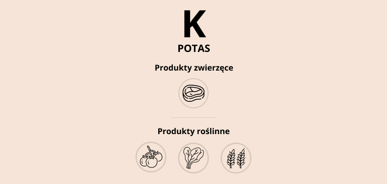 Potas jest głównym dodatnio naładowanym jonem (kationem) w naszych komórkach. Jego głównym zadaniem jest utrzymywanie nas przy życiu. Potas jest niezbędny do utrzymania prawidłowej równowagi wodno-elektrolitowej, reakcji enzymatycznych, integralności komórek i kurczliwości mięśni. Potas i sód są przepompowywane przez błonę komórkową. Jest to proces, który steruje transmisją impulsów nerwowych. Potas znajdujący się w naturalnej, nieprzetworzonej żywności jest często związany z anionem organicznym (np. cytrynianem). Aniony organiczne odgrywają ważną rolę w buforowaniu kwasów wytwarzanych przez organizm podczas metabolizowania mięsa lub pokarmów bogatych w białko. Kwasy te mogą demineralizować kości i zwiększać ryzyko wystąpienia kamieni nerkowych.