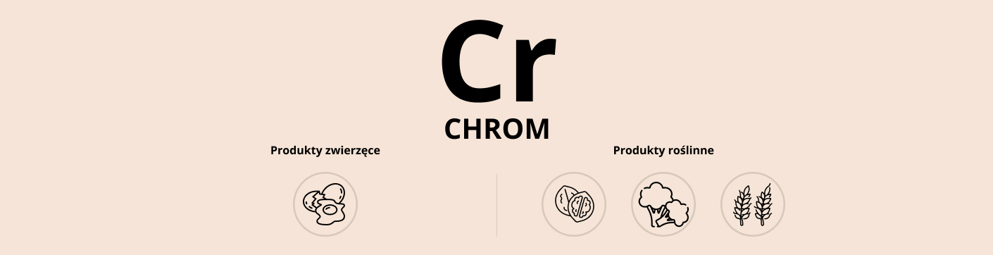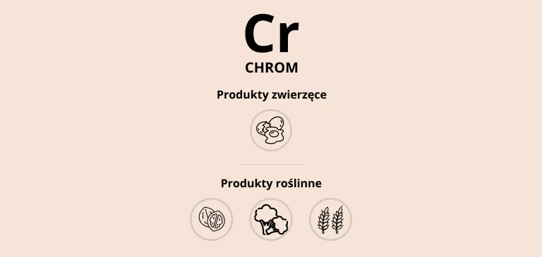 Chrom znajduje się w żółtku jaja, produktach pełnoziarnistych, płatkach zbożowych o wysokiej zawartości otrębów, fasolce szparagowej, brokułach, orzechach i drożdżach piwnych. Diety bogate w cukry proste mogą zwiększać wydalanie chromu wraz z moczem z powodu zwiększonego wydzielania insuliny.