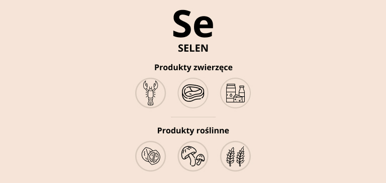 Selen jest obecny w owocach morza, mięsie, produktach pełnoziarnistych, nabiale, owocach i warzywach. Zawartość selenu w pokarmach roślinnych zmienia się w zależności od zawartości selenu w glebie. Żywność pochodzenia zwierzęcego jest niezawodnym źródłem selenu, ponieważ zwierzęta wymagają selenu w swojej diecie i jest on dodawany do paszy.