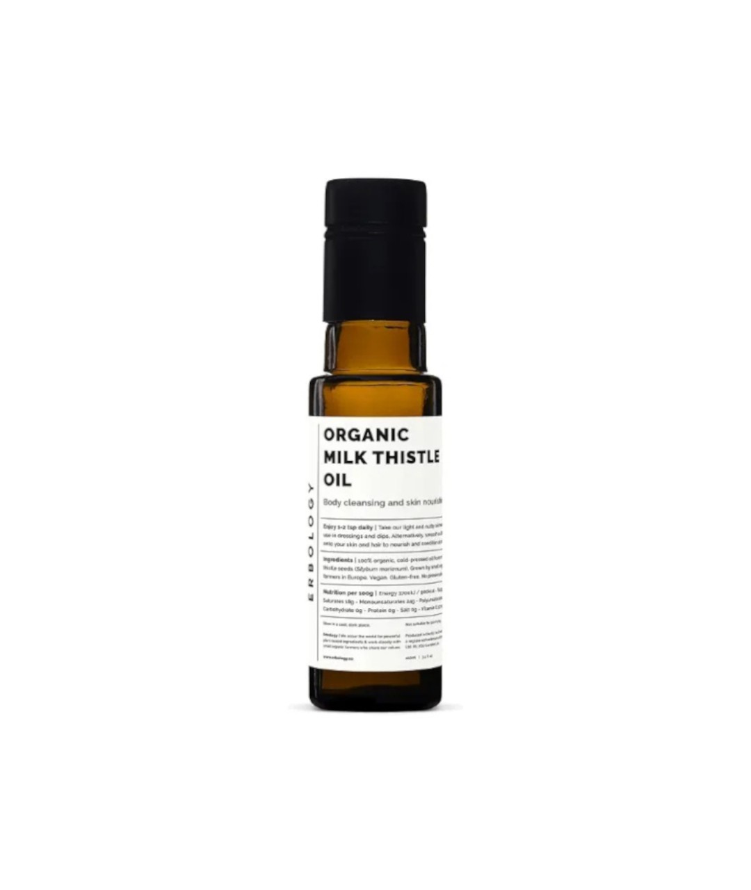 100% organiczny olej tłoczony na zimno z nasion ostropestu plamistego. Bez konserwantów. Bez glutenu.