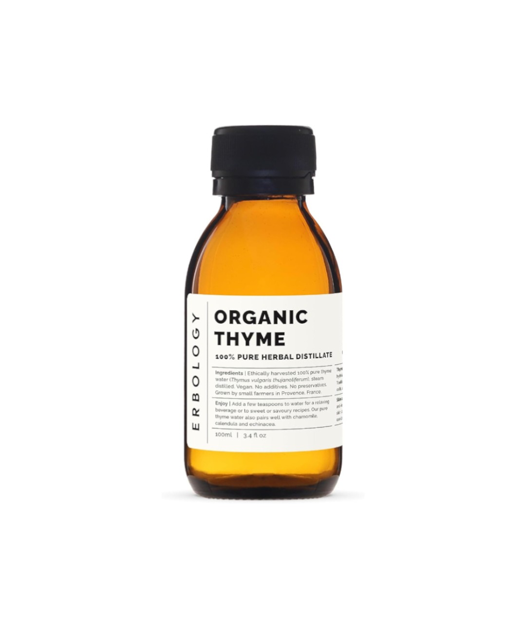 100% czysta woda tymiankowa (Thymus vulgaris thujanoliferum), destylowana parą wodną.
