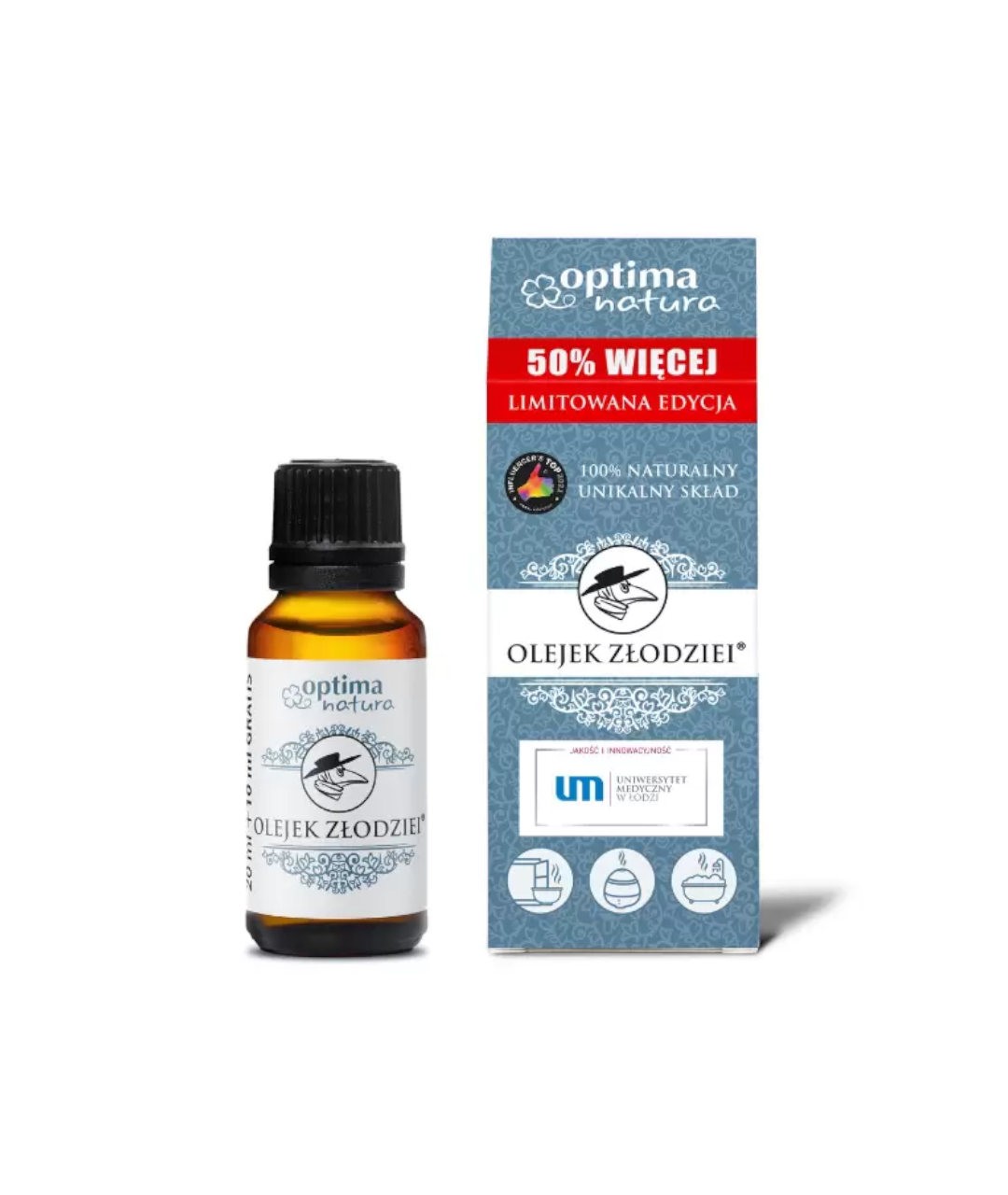 Naturalny Olejek Złodziei ® to wyjątkowa kompozycja 6 wysokiej jakości olejków goździkowego, cytrynowego, cynamonowego z kory i liści, eukaliptusowego i rozmarynowego .