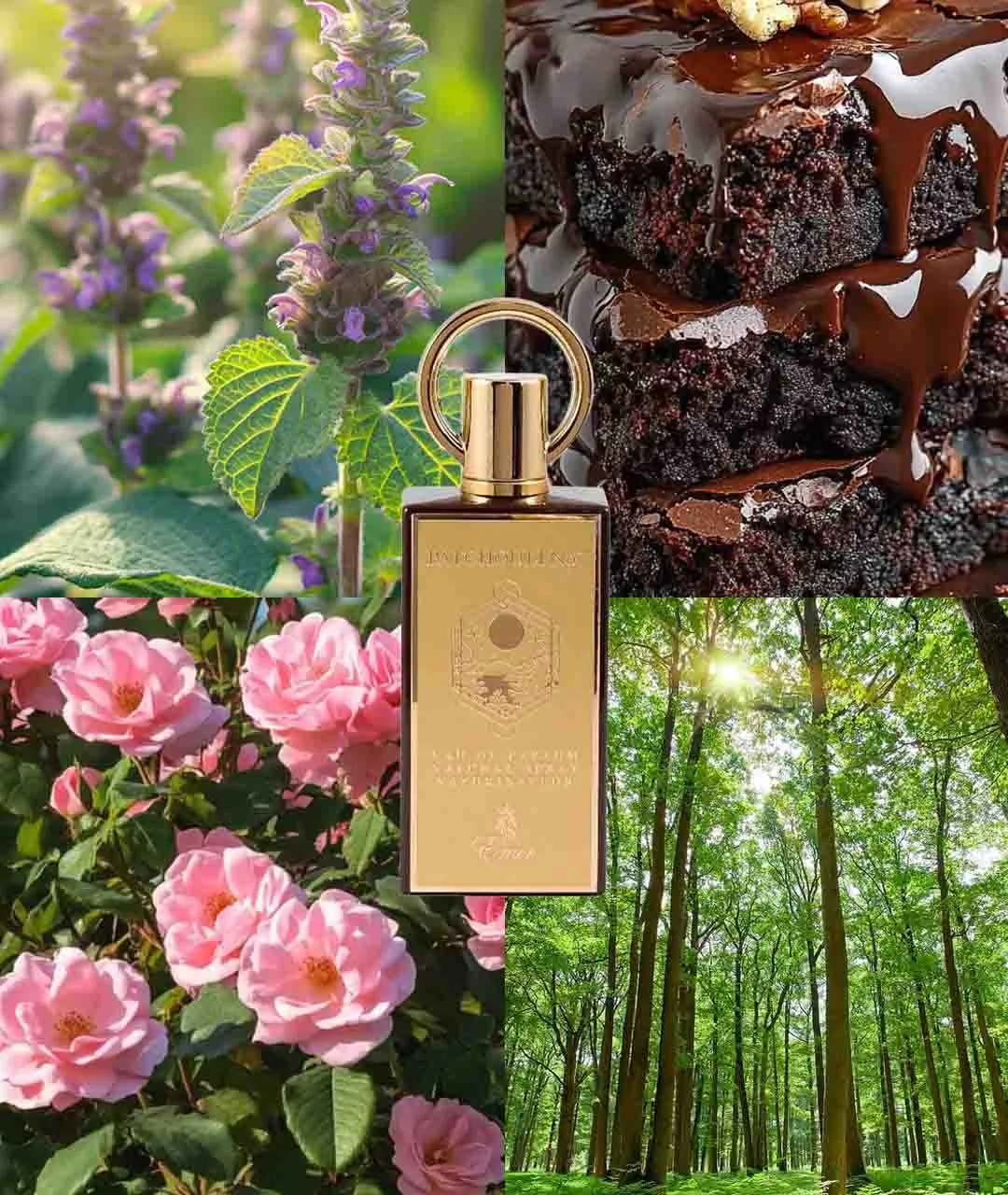 - Nuty głowy: liść paczuli, kakao, nuty drzewne – początek zapachu zachwyca głębią i ziemistością paczuli w połączeniu z subtelną słodyczą kakao.
