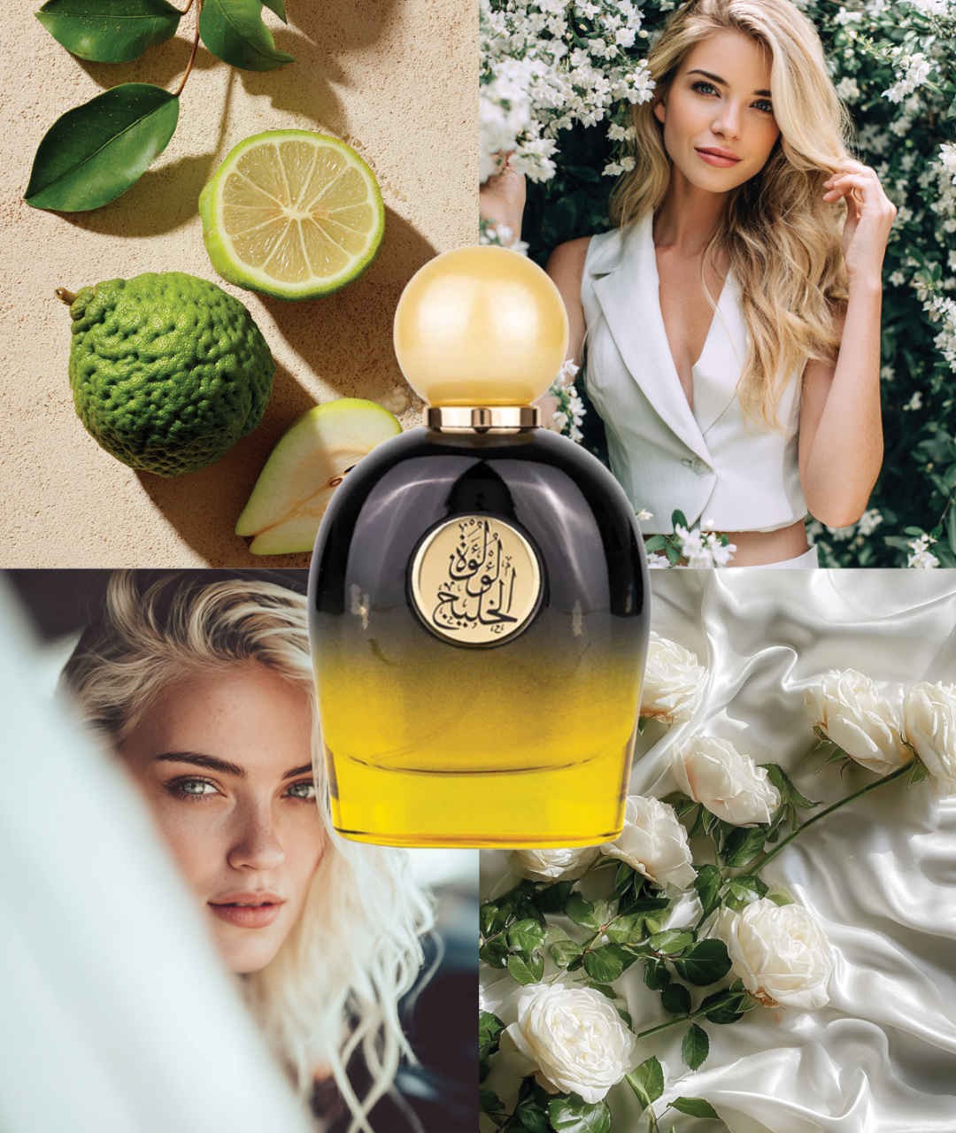 Świeża bergamotka i soczysta gruszka otwierają perfumy Lulut Alkhaleej, wprowadzając lekkość i energię. W sercu rozkwita elegancka róża, której aromat harmonijnie łączy się z ciepłym cedrowym drewnem, tworząc zmysłową i wyrafinowaną kompozycję. Baza z dominującym suchym drewnem i bogatym, orientalnym oudem nadaje zapachowi głębię i tajemniczość, przenosząc w podróż między starożytnymi tradycjami a współczesnym luksusem.