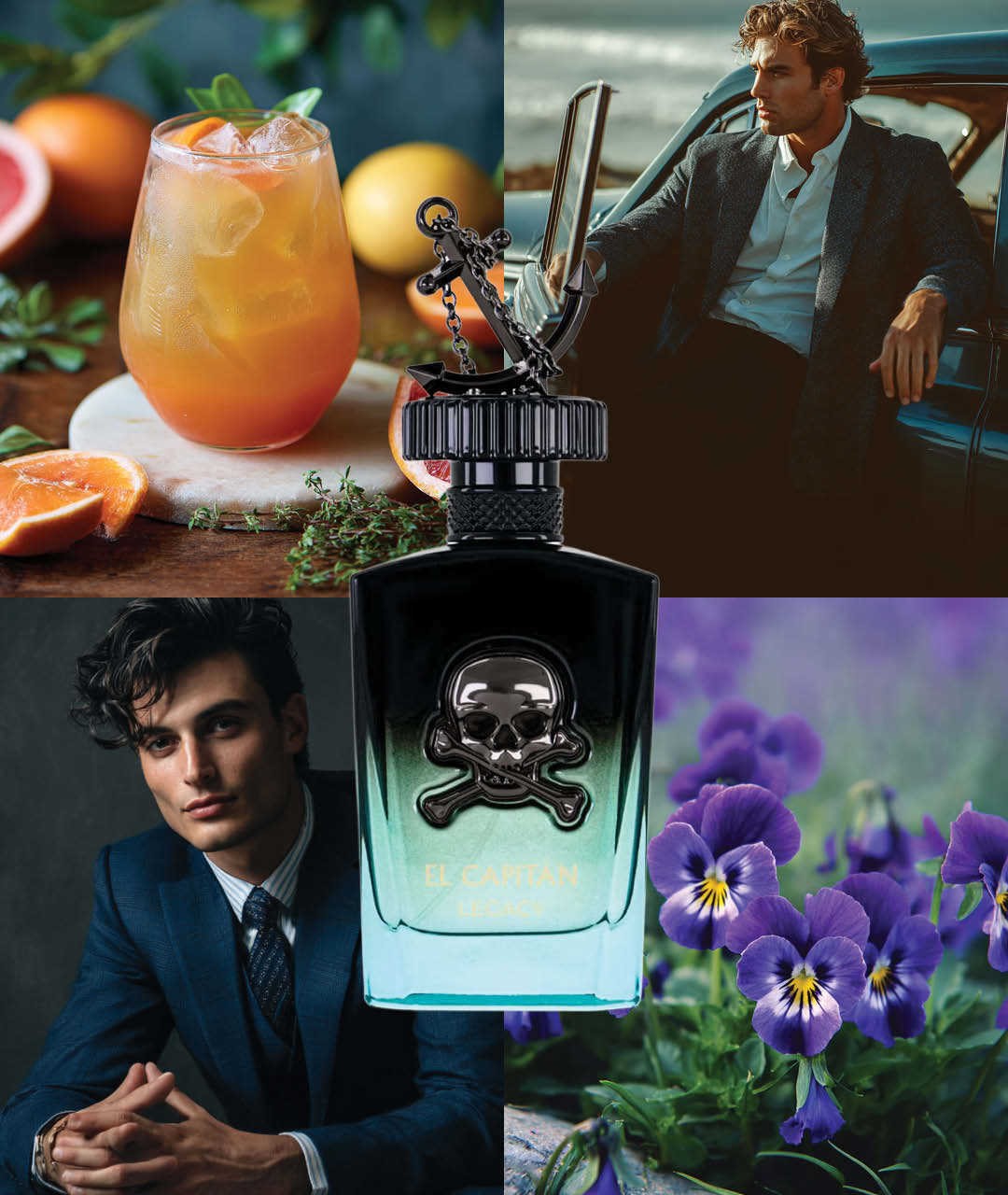 Świeże nuty pomarańczy, grejpfruta, zieleni i ananasa przypominają otwarte, nieokiełznane morze. W sercu kompozycji pojawia się delikatny fiołek, bursztyn i lawenda, które nadają zapachowi głębię i elegancję. Baza z piżma, kaszmiru i paczuli otula ciepłem i tworzy trwałe, męskie wrażenie.