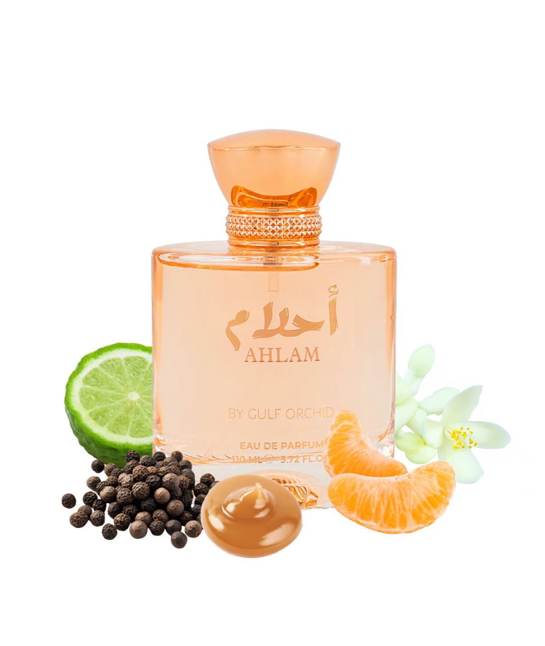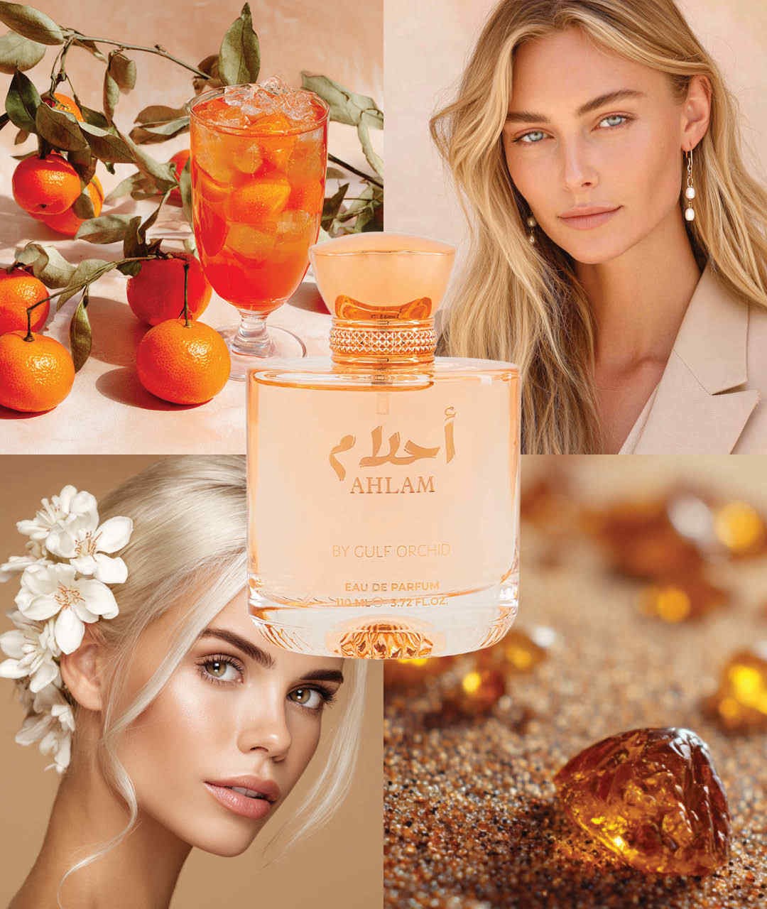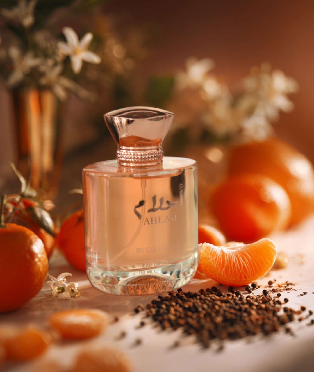 Ahlam to zapach ponadczasowy, który łączy świeżość cytrusów, kwiatową delikatność oraz ciepłe, słodkie tony.