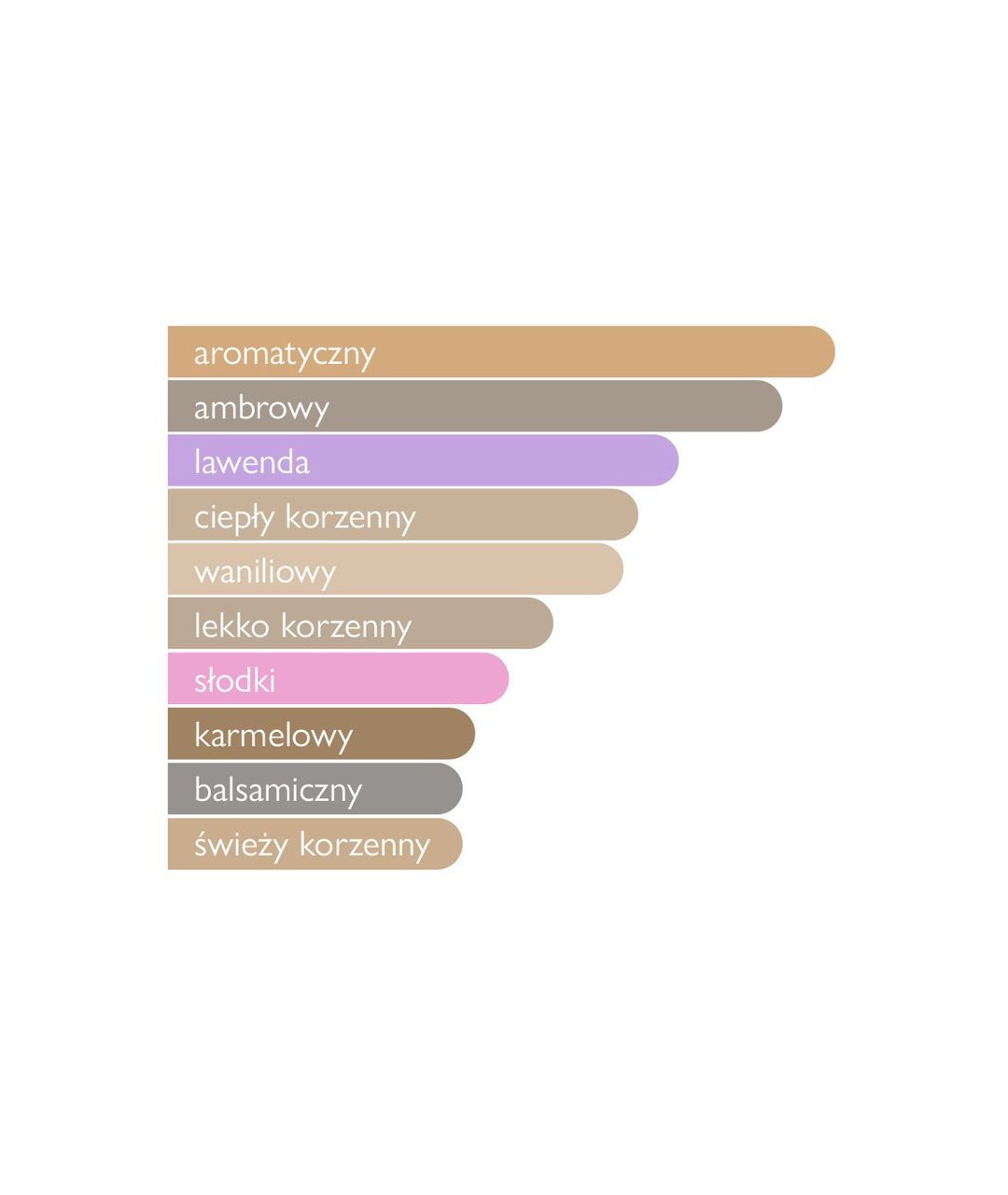 Kompozycję otwiera potężne połączenie świeżej mandarynki i aromatycznej szałwii, które natychmiast przykuwa uwagę i zapowiada wejście kogoś wyjątkowego. To energetyczne otwarcie buduje aurę charyzmy i przywództwa. W sercu zapachu lśni ambra i karmel, tworząc bogaty, złocisty akord – ciepły, zmysłowy i jednocześnie dostojny. To serce, które bije w rytmie luksusu i głębokiej, nieprzemijającej elegancji. Bazę kompozycji tworzą fasola tonka i drzewo sandałowe – szlachetne, kremowe i intensywne, nadające zapachowi trwałość i charakter. Ich głęboki ton pozostawia imponujący ślad – subtelny, lecz nie do przeoczenia.