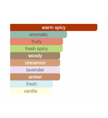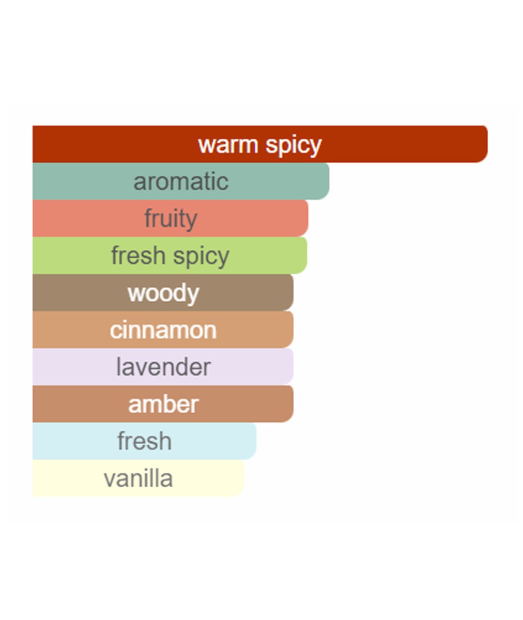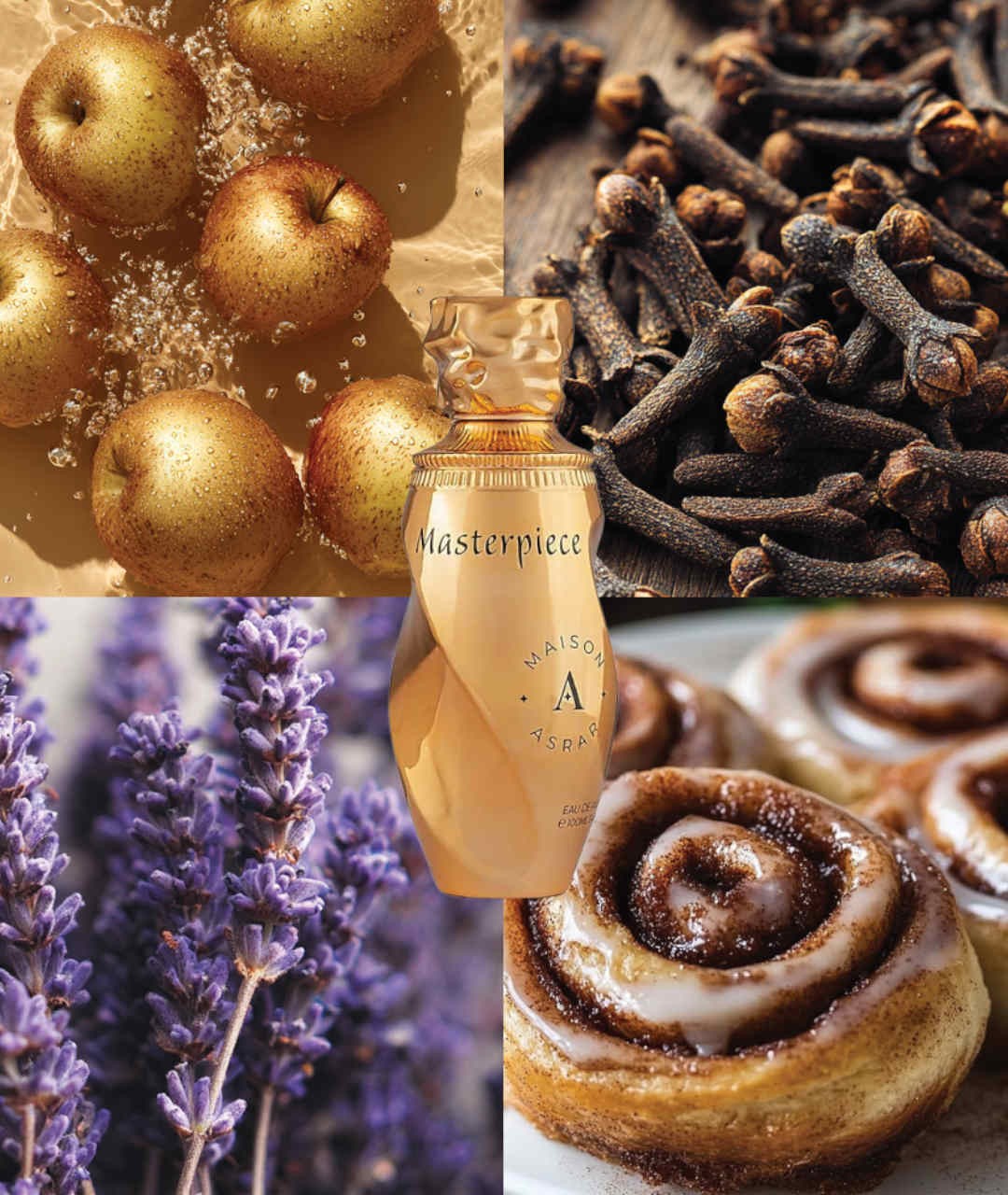 Pierwsze nuty otwierają się świeżością jabłka, wzbogaconą o wyrazisty akcent goździka i kardamonu, wprowadzając energetyczną, lekko pikantną aurę. W sercu kompozycji pojawiają się ciepłe i harmonijne tony cynamonu, lawendy oraz geranium, nadając zapachowi głębię i równowagę. Bazowe nuty wanilii, ambry i drzewa cedrowego tworzą eleganckie, trwałe wykończenie, które długo pozostaje na skórze.