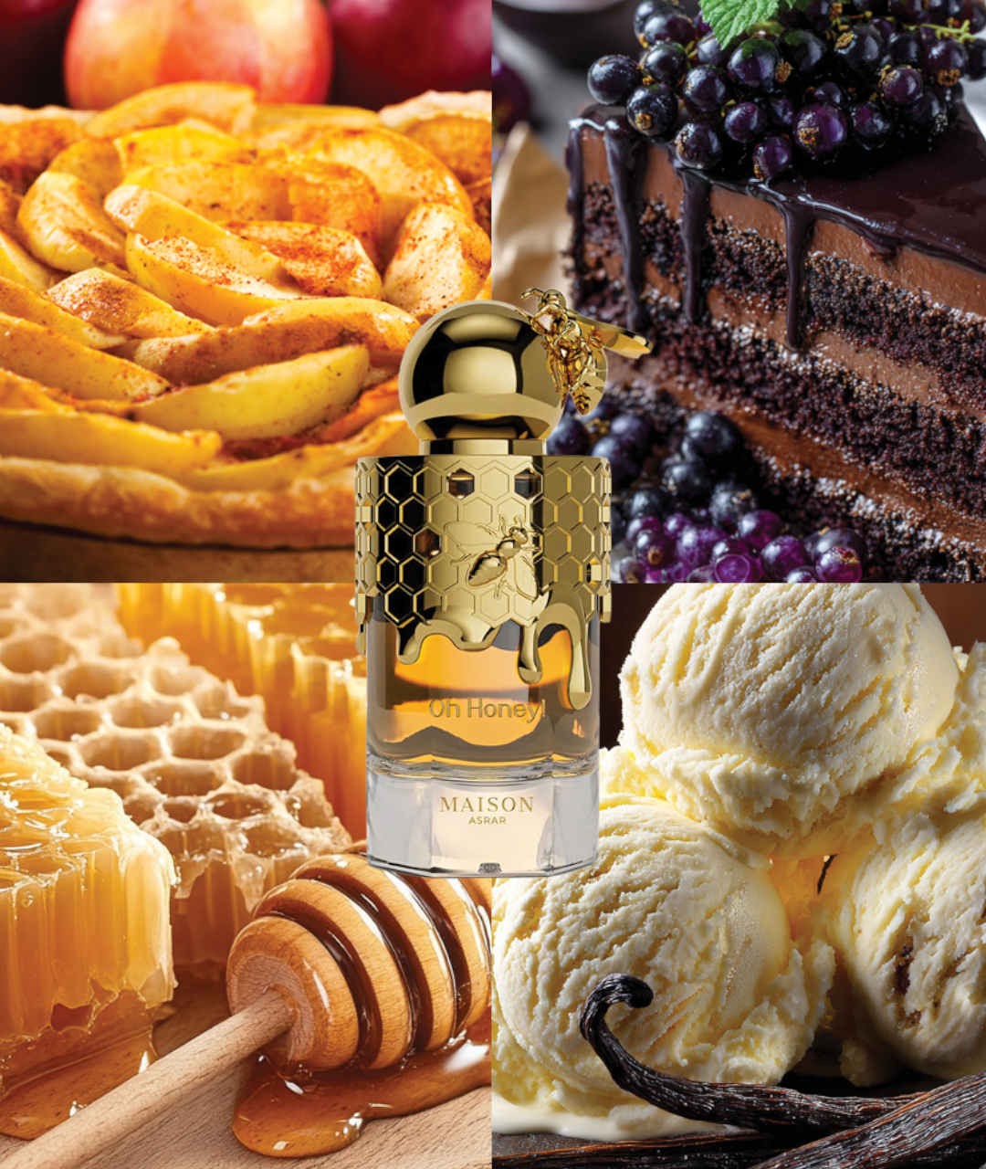 - Oh Honey! to słodka, owocowo-kwiatowa kompozycja, idealna na co dzień i wieczorne wyjścia, która otula przyjemną, komfortową aurą – zwłaszcza w chłodniejsze dni.