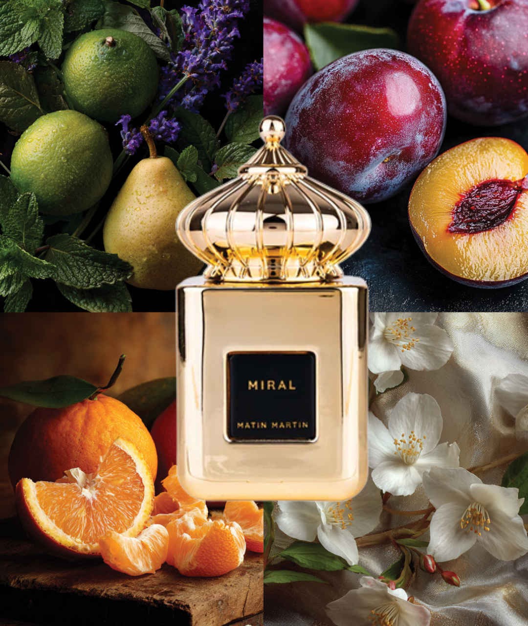Otwarcie przyciąga soczystością gruszki, żywą mandarynką i aksamitną śliwką, tworząc energetyczną, radosną aurę. W sercu jaśmin i delikatny kwiat pomarańczy wprowadzają elegancję i subtelność, harmonijnie współgrając z owocowym początkiem. Całość zamyka zmysłowa baza z jaśminu, fasolki tonka i ambry, nadając kompozycji głębię, trwałość i ciepłe, otulające wykończenie.